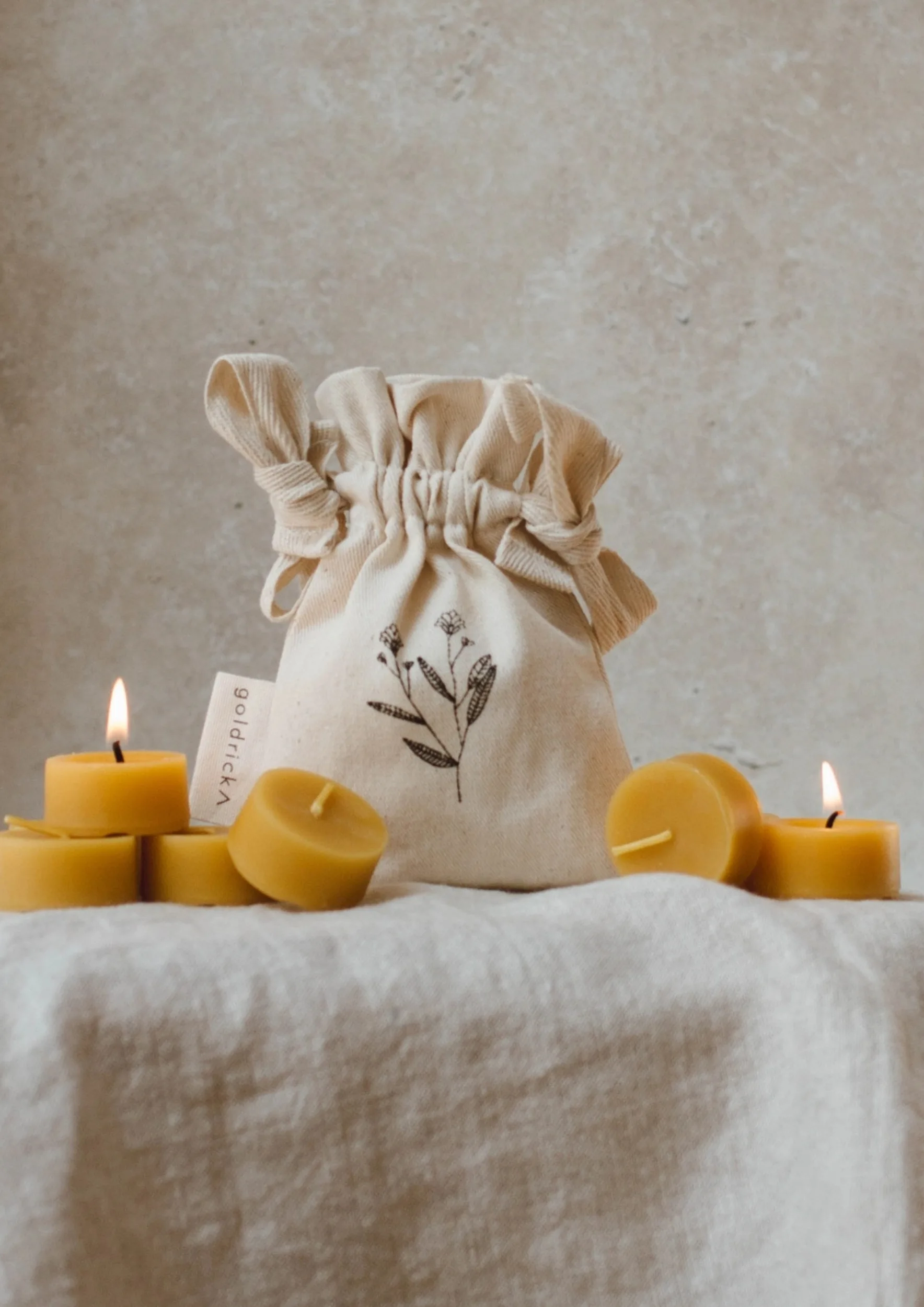 Das Set enthält 16 Teelichter aus purem Bienenwachs mit einem Docht aus Baumwolle. Jede Kerze brennt etwa 5 Stunden und kommt in einer sicheren Metallhülle. Verpackt in einer kleinen Kartonbox – bereit, um sich selbst oder die Liebsten zu beschenken.
