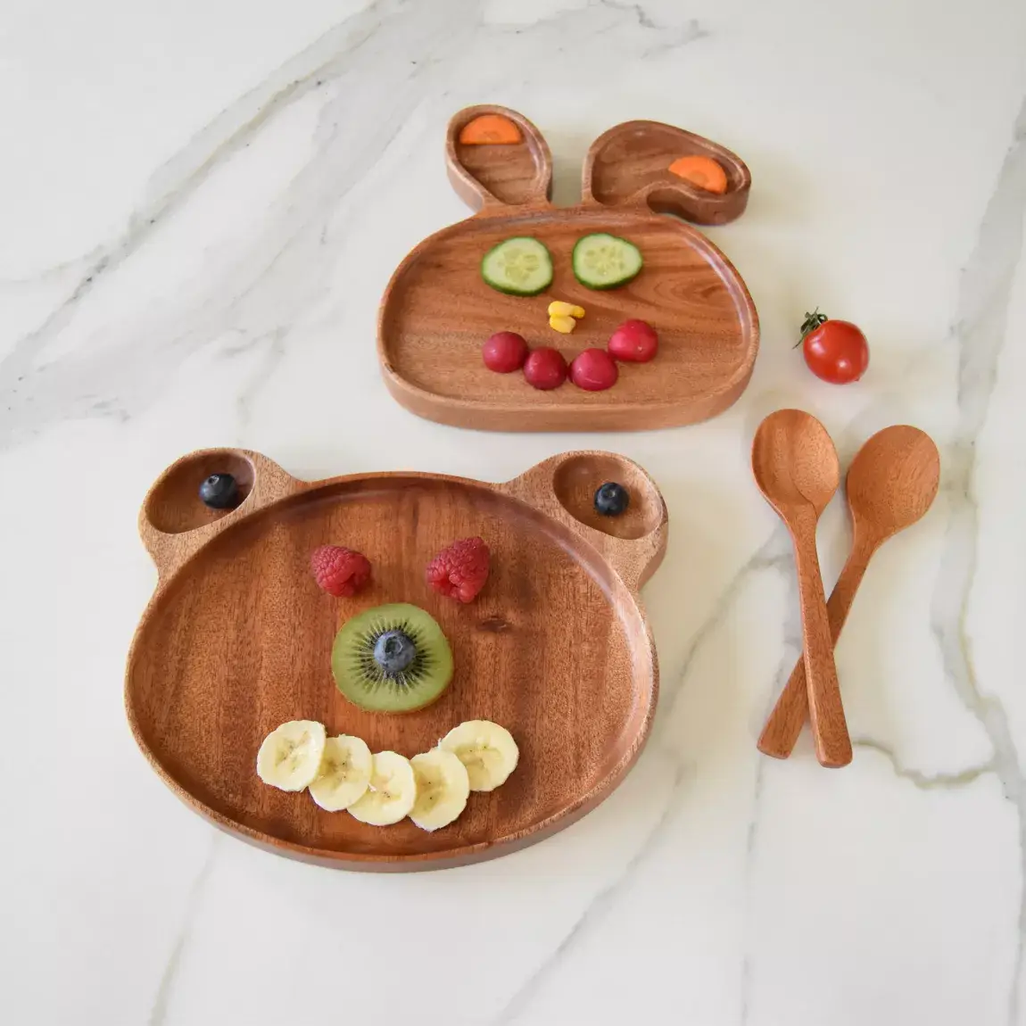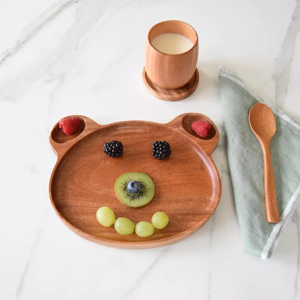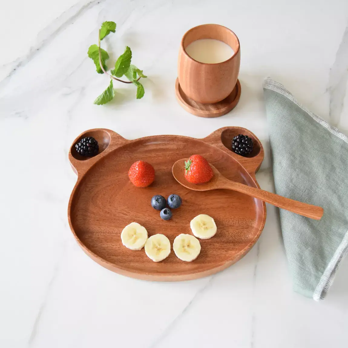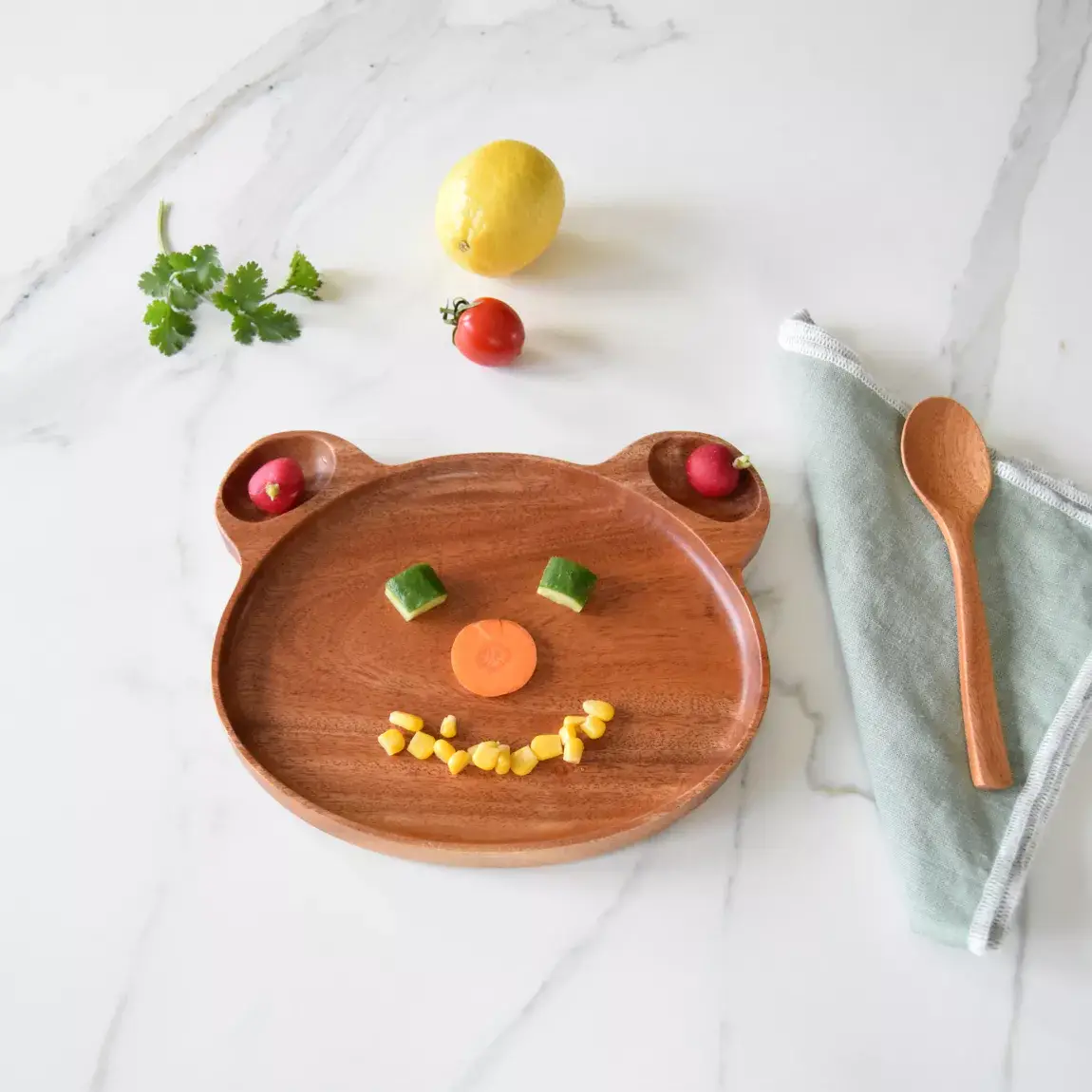 Gefertigt aus hochwertigem Khaya-Holz und mit lebensmittelechtem Öl behandelt, ist der Teller nicht nur schön anzusehen, sondern auch perfekt für den Alltag und kleine Hände gemacht.