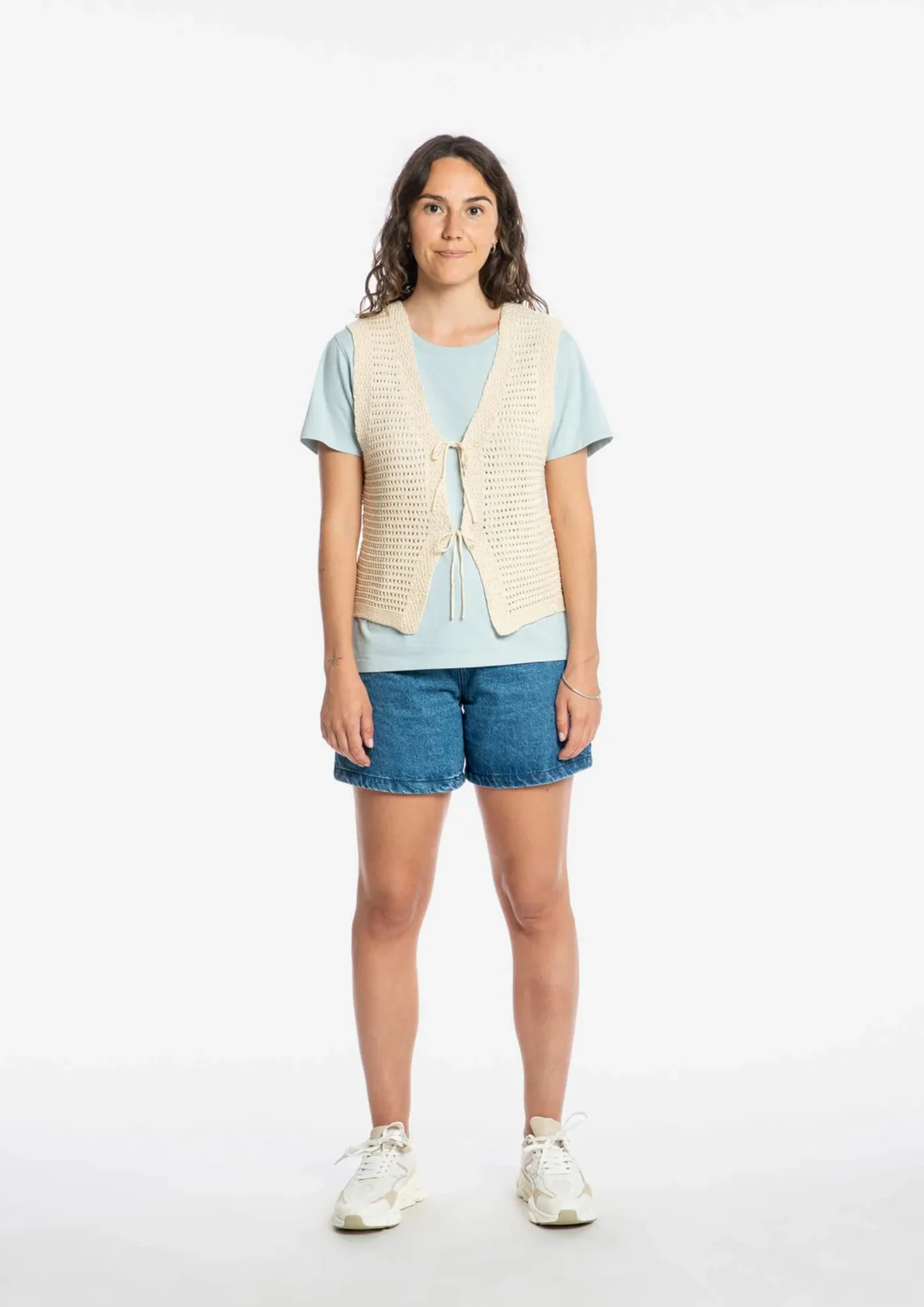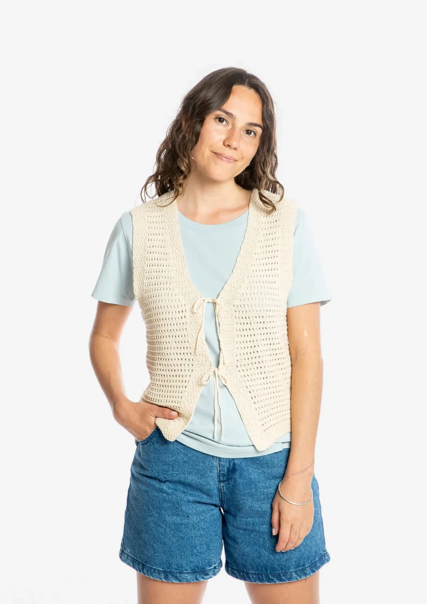 Das perfekte Teil für jede Sommerlaune: die Tie Vest bringt Leichtigkeit und eine verspielte Note in deinen Look. Die offene Weste mit der feinen Schnürung vorne setzt zarte Akzente und lässt sich individuell binden – je nachdem, wie locker oder feminin du sie tragen möchtest.